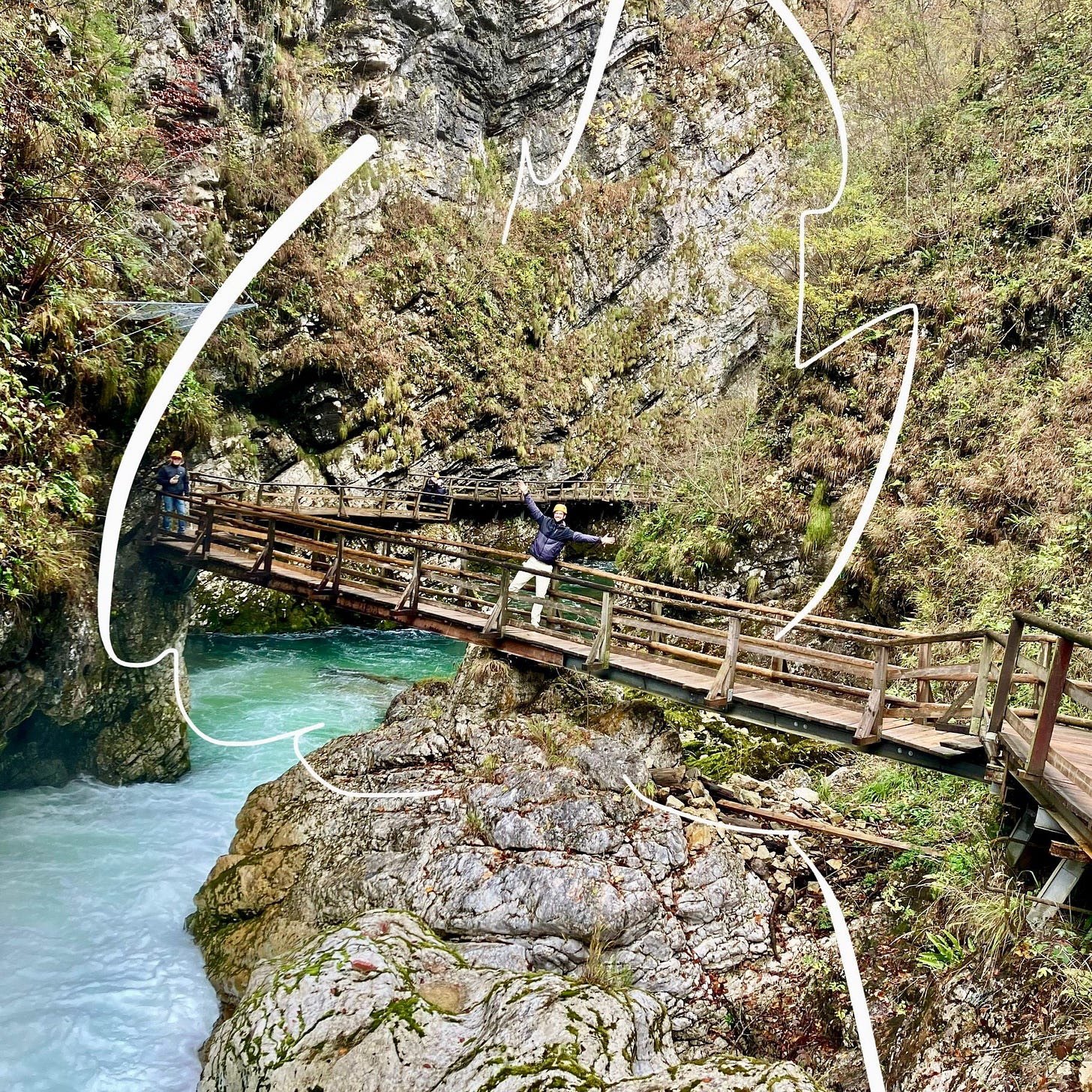 Perpassar as plataformas as quais circundam o percurso fluvial de Vintgar é uma ilustre expedição ao turismo local até que assez selvagem e convivial! Escuta-se o barulho do curso da água, a qual bate contra a pedra, que de tanto bater, uma hora fura. E se furou, eu não vi — contudo escutei, então prosa para o próximo calendário ser deve. Patinhos, muitos patinhos ao redor de Bled. E enquanto eu andava, a chuva me acompanhava. Em determinado momento, não me importava mais que os meus sapatinhos estivessem encharcados. A vida ainda seguiria para a frente, ou melhor, para trás. Pois ao chegar em nove treze avos da trilha executada em hipérbole, um sítio de construção impediria a circulação de qualquer pedestre sonhador. Como saldo, retornar todo o trajeto uma vez executado foi a única solução aparente. Eu já não sabia para qual caminho de Compostela estaria me dedicando, porém, em algum momento, em algum lugar, aquilo se assemelharia a tal feitio.